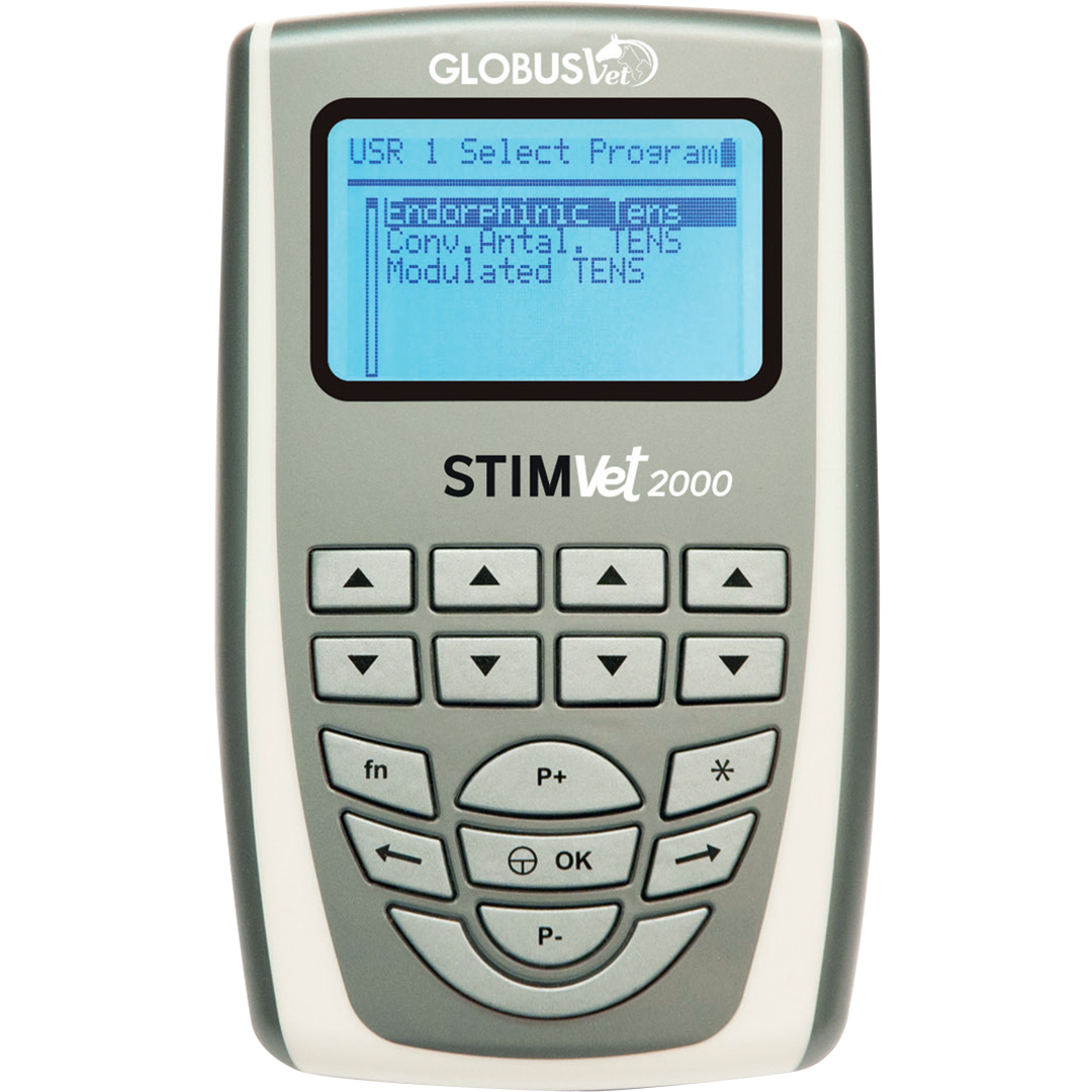 G5623 |O Stimvet 2000 é um eletroestimulador portátil adequado para reabilitação e tratamento muscular antalgic de cães, gatos e cavalos. O dispositivo também é adequado para cães esportivos ou trabalhadores que devem aumente suas habilidades atléticas. Stimvet 2000 também inclui alguns programas de microcorrente útil para ferimentos assustadores.
